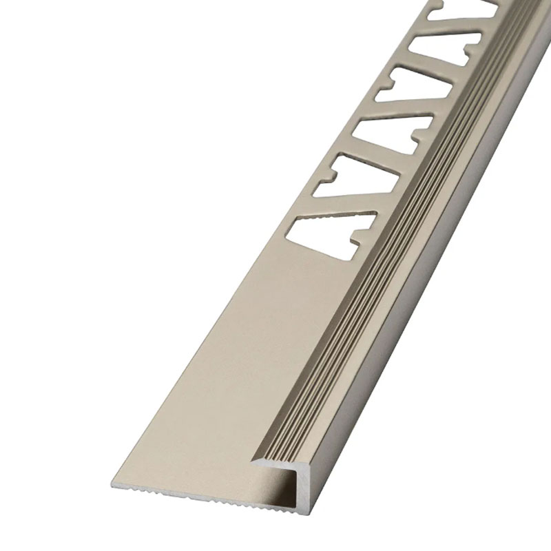 Perfil Point de aluminio 5 mm x 2 m, niquel mate para remates precisos.