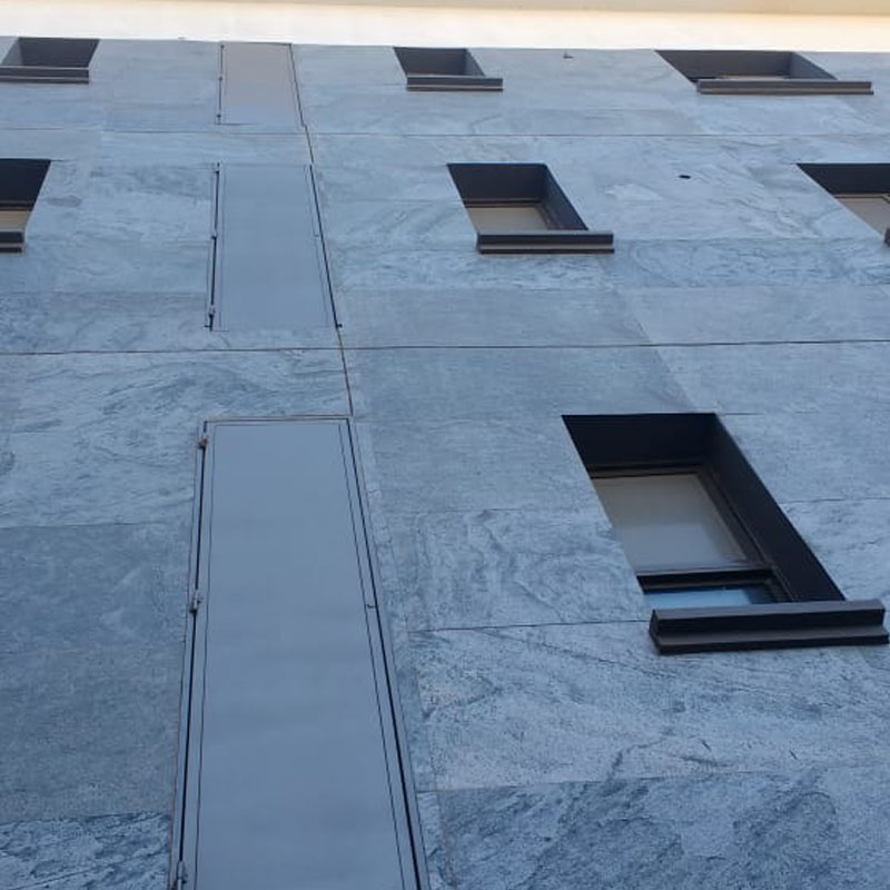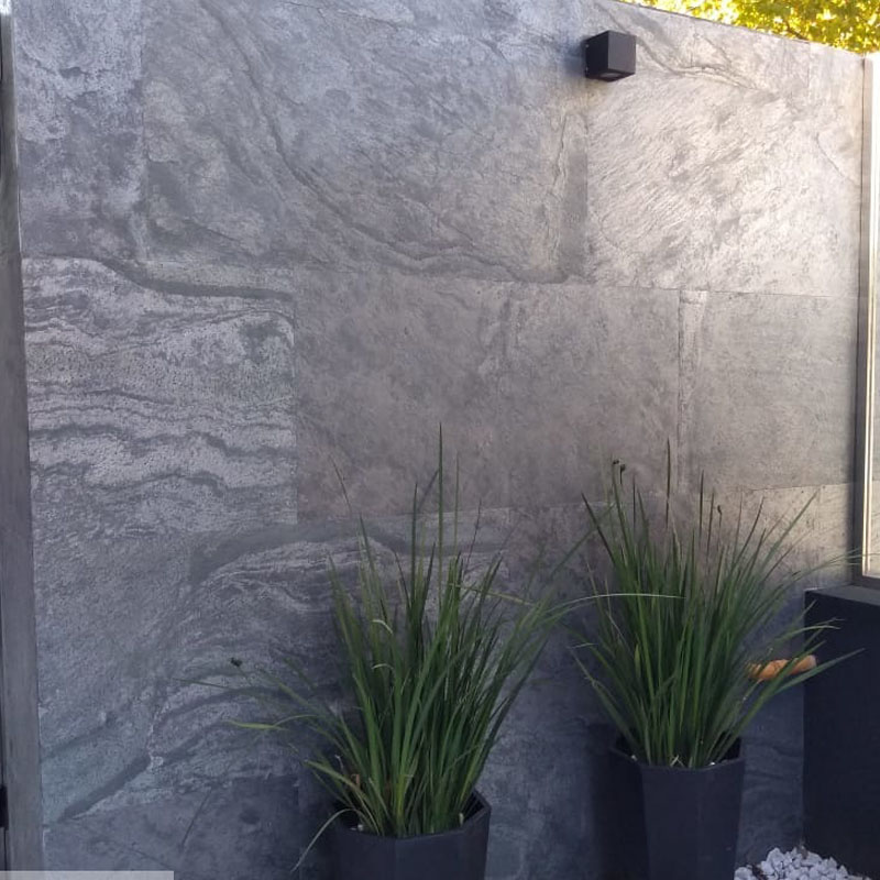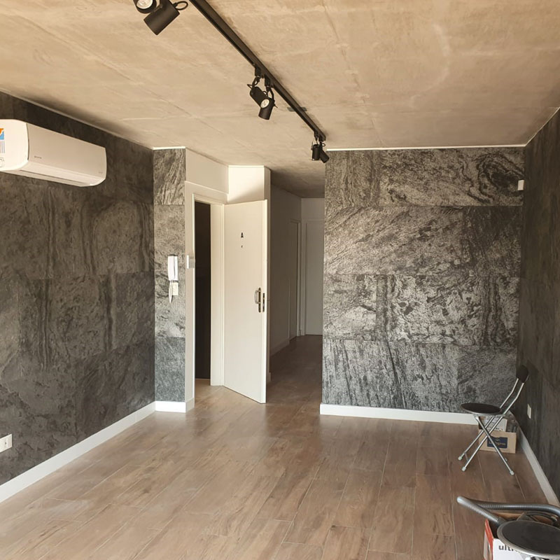 Gracias a su composición, PedraFlex permite revestir interiores y exteriores con un resultado de alto impacto visual. Su formato se adapta a superficies curvas o irregulares y puede aplicarse sobre múltiples bases de construcción, ampliando las posibilidades de diseño en proyectos residenciales y comerciales. Cada lámina es única, ya que está formada por una fina capa de piedra natural; por su origen geológico, no existen dos piezas iguales.