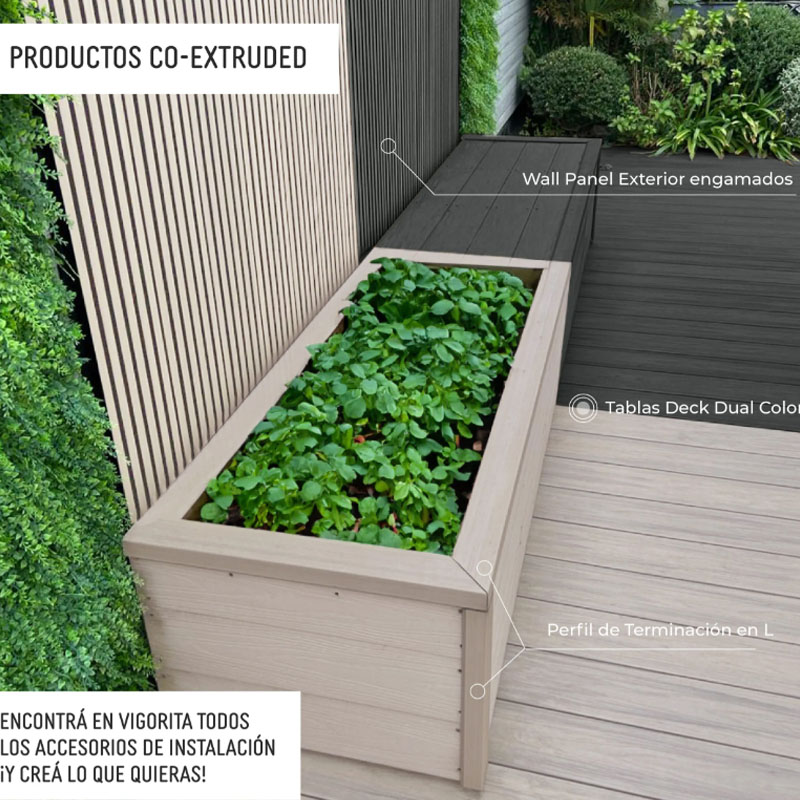 Deck co-extruded con fibras de madera y resina HDPE