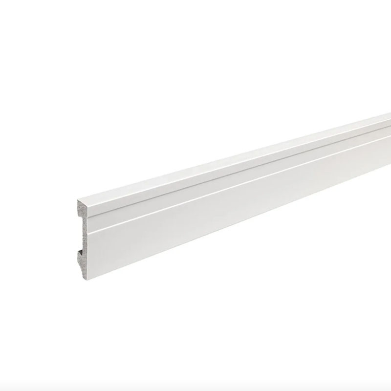 El EPS Zócalo Line 70 mm x 2,5 m en tono blanco ofrece un diseño recto y elegante, ideal