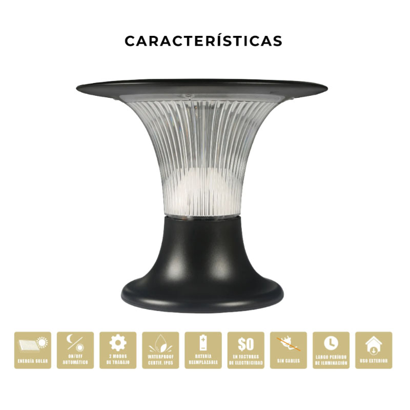 Lámpara solar LED de pilar, 2200 lúmenes, 150W