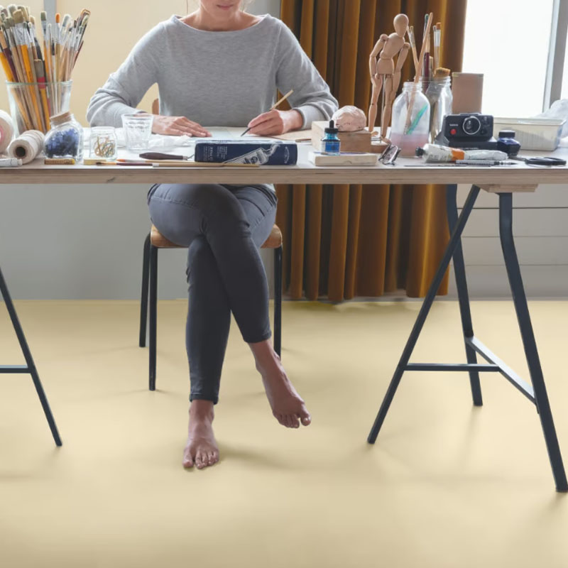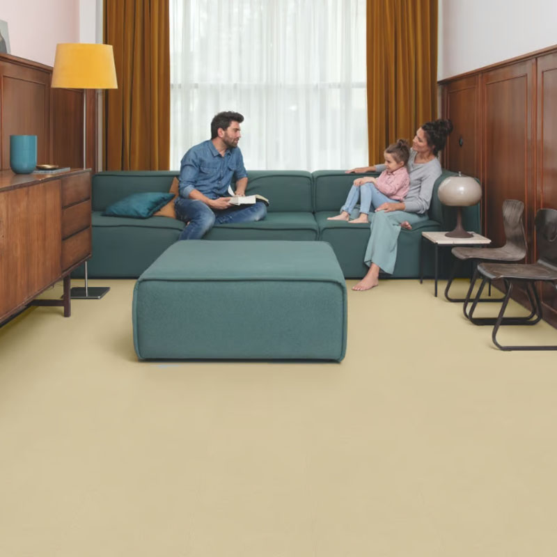 Piso vinílico SPC Oro Suave SP023, 4 mm liso en tono beige, cálido, suave y luminoso para cualquier interior.
