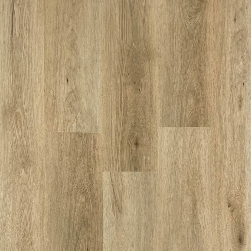 Piso vinílico SPC Pacific Sands Oak, 7 mm con manta, texturado marrón claro para ambientes cálidos y modernos.