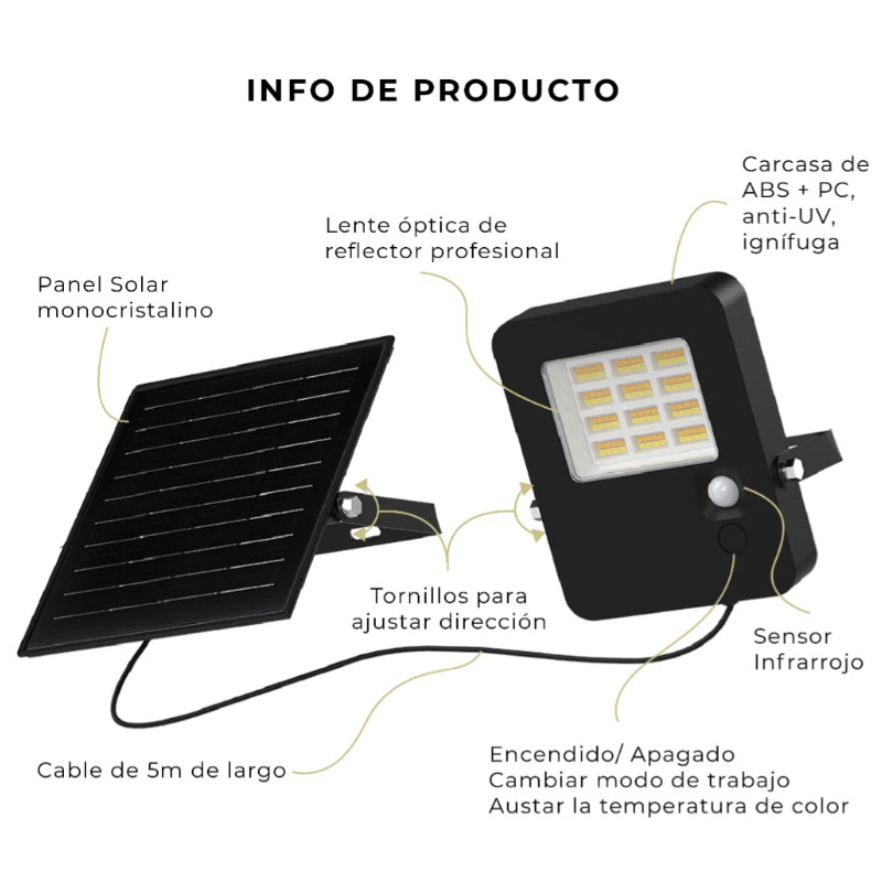 Reflector solar LED con control remoto, 1900 lúmenes, 150W