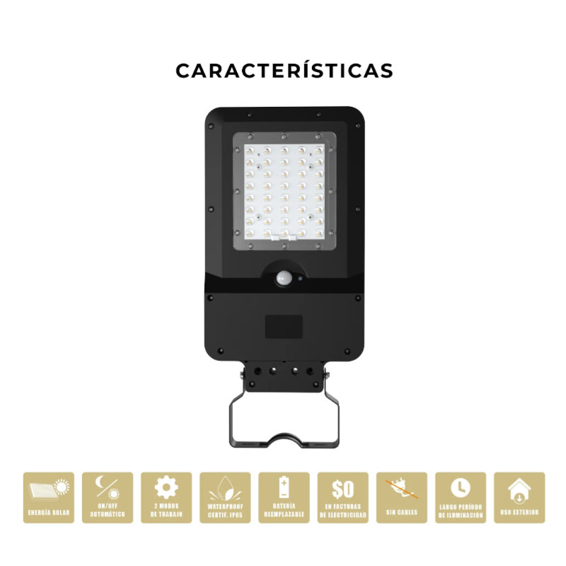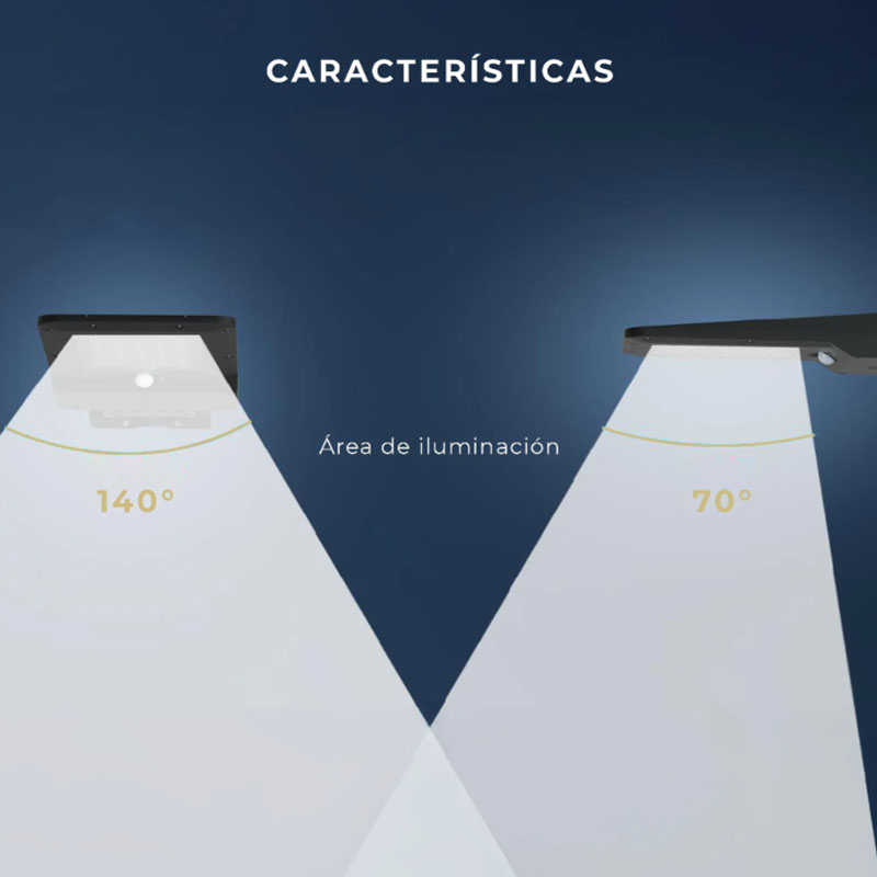 40 SMD2835, batería litio 5400mAh reemplazable Grade-A, resistente al agua y polvo. Lente óptica profesional para mayor área de iluminación y brillo. Modos: sensor automático e iluminación continua