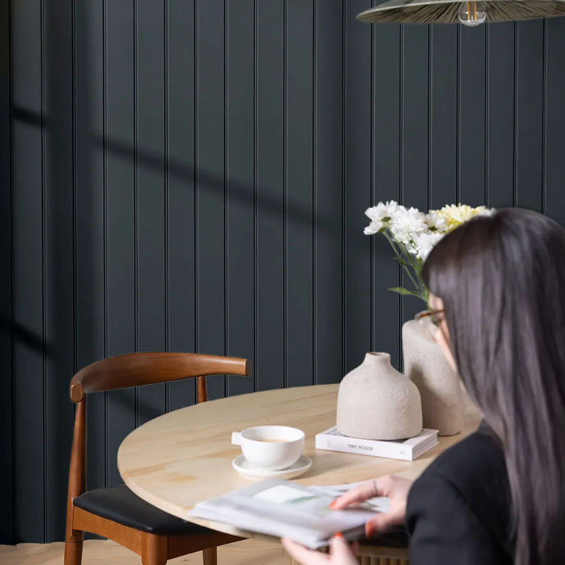 Aporta textura, dinamismo y personalidad a las paredes interiores, ideal para espacios contemporáneos.