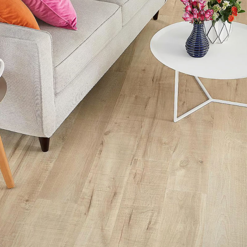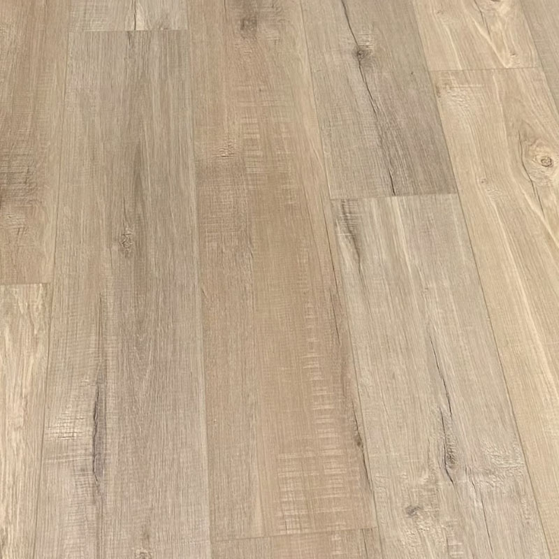 Piso vinílico SPC Roble Brandy SP033, 5 mm con manta, texturado marrón claro para interiores cálidos.