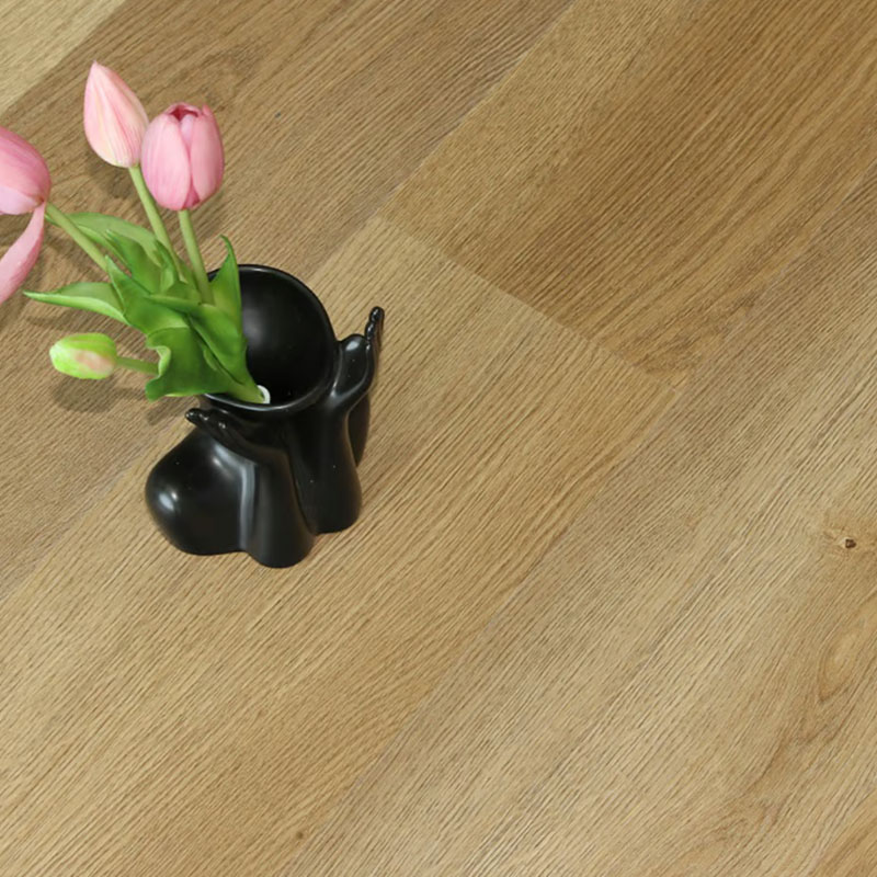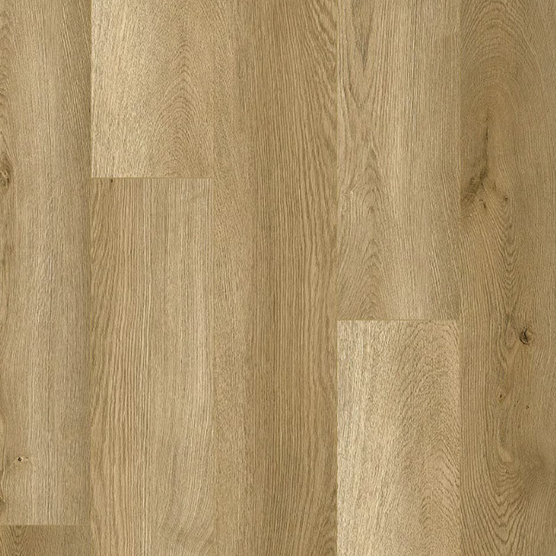Piso vinílico SPC Roble Minsk, 5 mm con manta, texturado marrón claro para un diseño cálido y moderno.