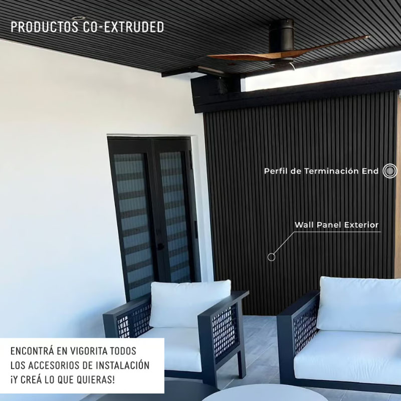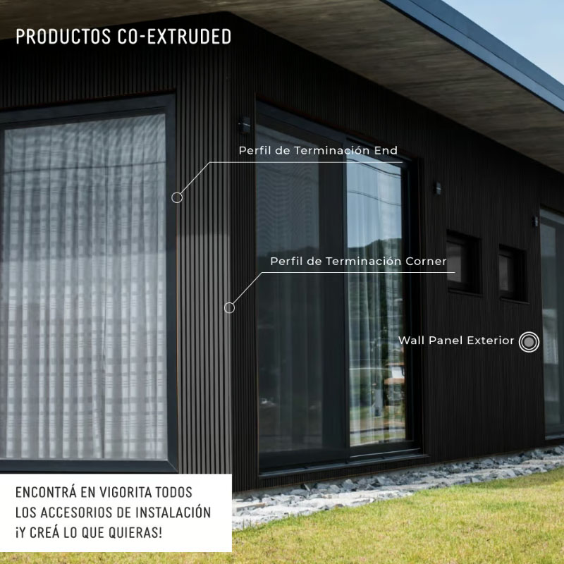 El Wall Panel Exterior Co-Extruded Stretch es un revestimiento diseñado para fachadas y muros exteriores,