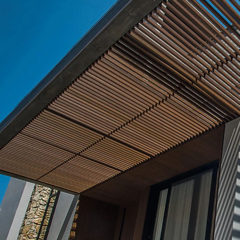 Viga Co-Extruded G07 Charcoal, diseñada para proyectos exteriores contemporáneos. Su acabado en tono negro aporta alto impacto visual, junto con resistencia a la intemperie y protección UV integrada.